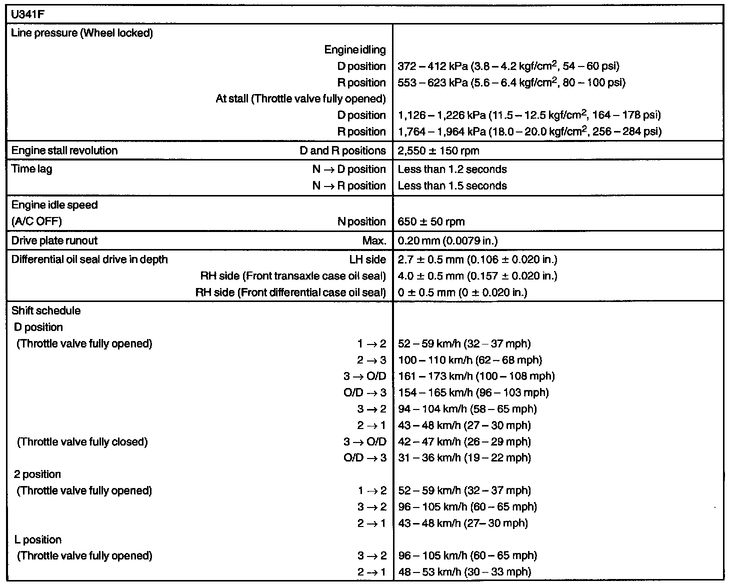 U341F Automatic Transmission/Transaxle - Service Data:
