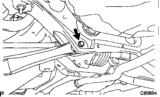 b. Remove the bolt and nut, disconnect the rear side rear suspension arm assy No.1 LH.