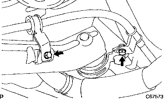a. Remove the 2 bolts, disconnect the parking brake cable assy No.3.