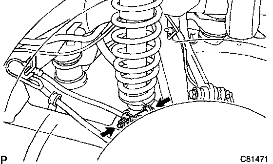 g. Remove the front side 3 bolts and rear lower suspension arm assy No.1 LH.