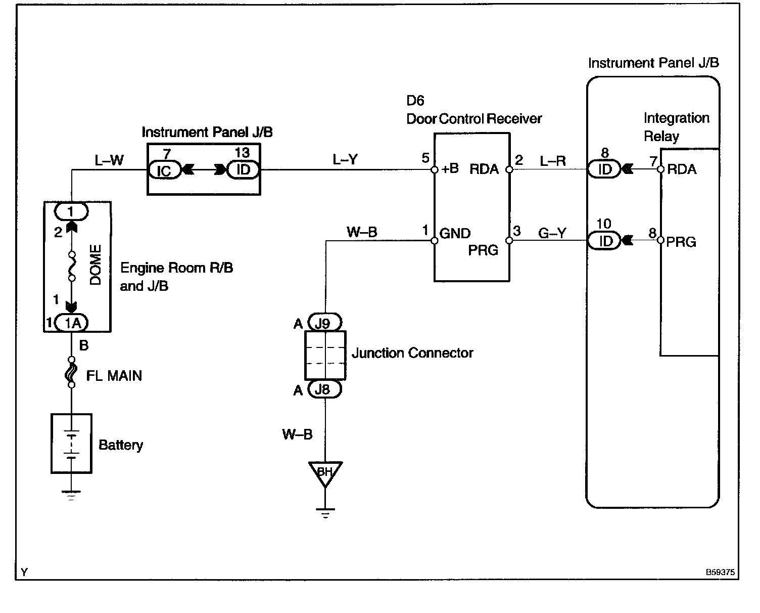 The integration relay sends a door LOCK/UNLOCK signal to each door lock actuator to control it.