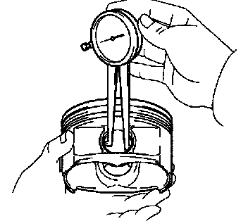 a. Using a caliper gauge, measure the piston pin bore diameter.