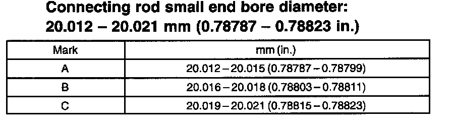 e. Subtract the piston pin outer diameter measurement from the connecting rod small end bore diameter measurement.