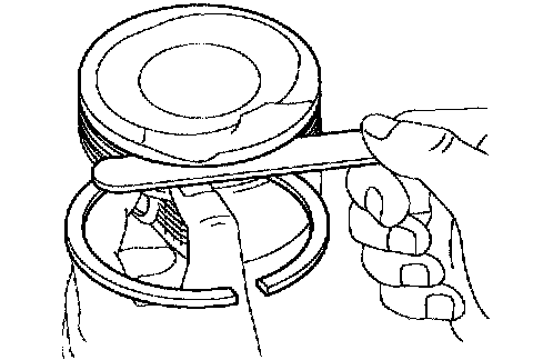 a. Using a feeler gauge, measure the clearance between the new piston ring and the wall of the ring groove.