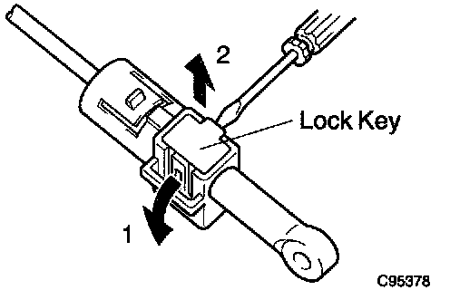 e. Using a small screwdriver, unlock the claw of the lock key of automatic adjustment part.