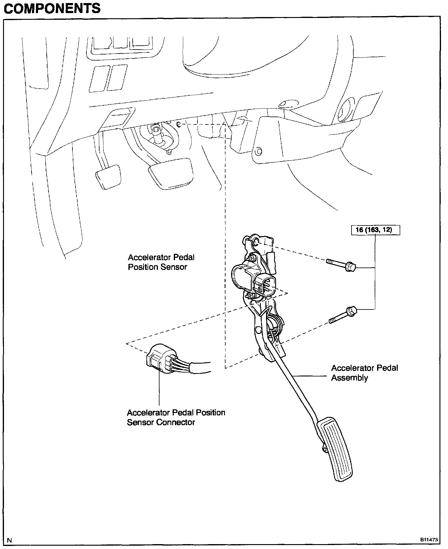 NOTE: To prevent deterioration, do not shock the accelerator pedal position sensor.