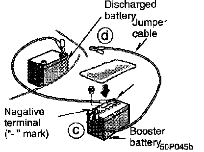 8. If the engine in the vehicle with the booster battery is not running, start it and let it run for a few minutes. During jump starting, run the engine at about 2000 rpm with the accelerator pedal lightly depressed.