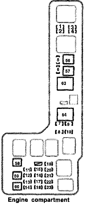 ENGINE COMPARTMENT1 Thru 23; 56 Thru 60; 63; 64: