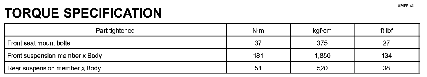 Maintenance - Torque Specification: