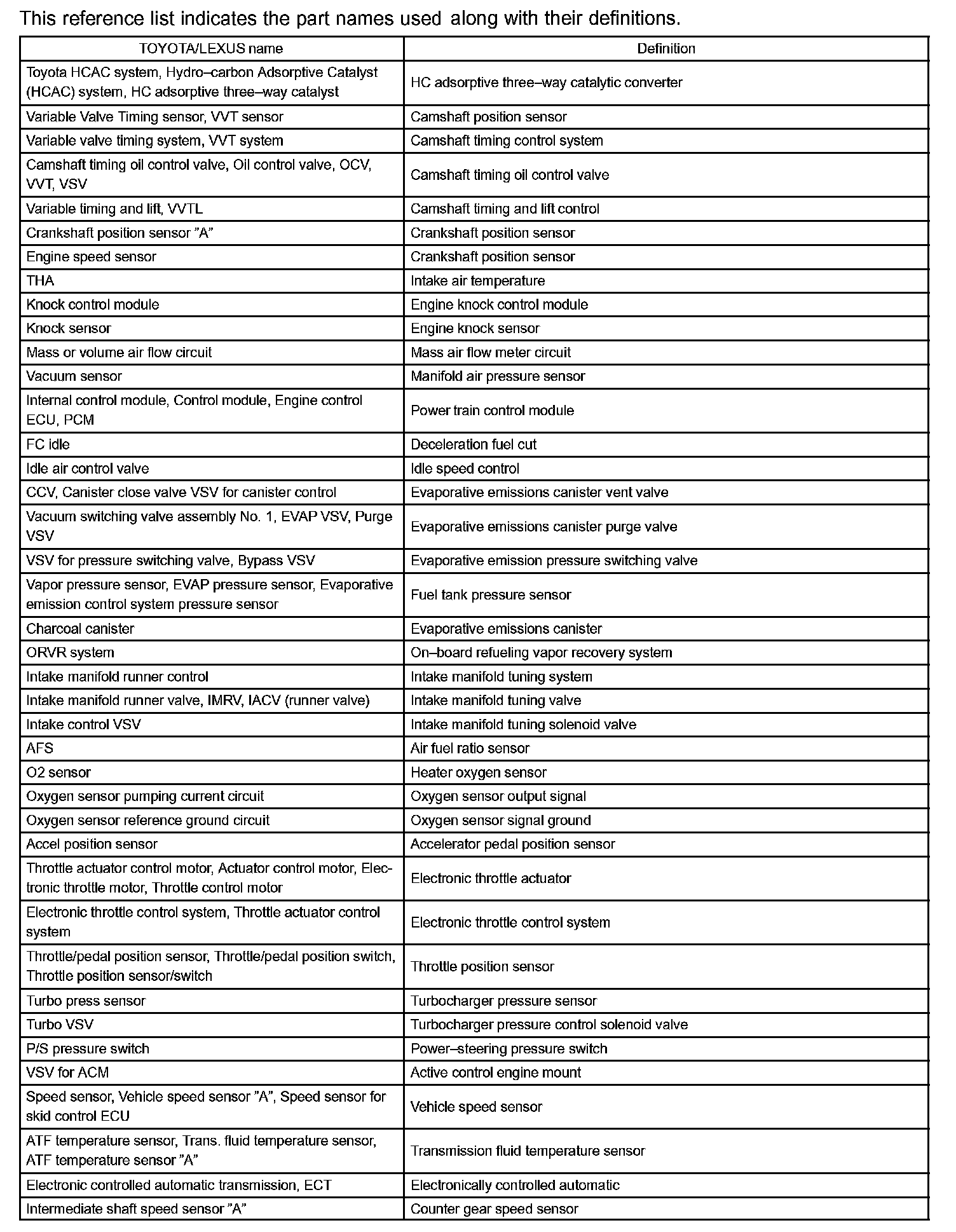 Toyota Part And System Name List Part 2: