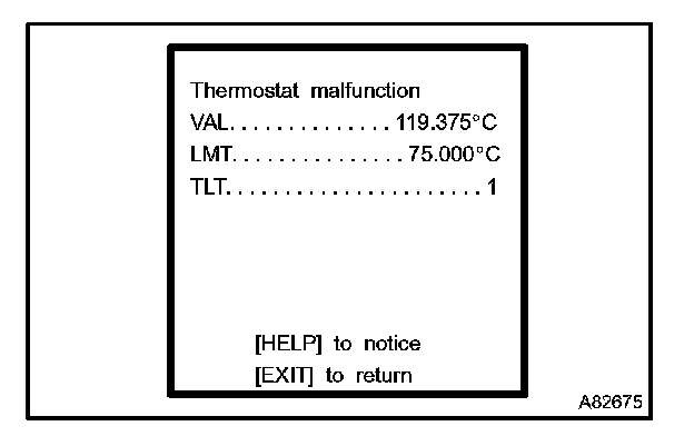 - TEST VALUE indicates the detection parameter value (Example: P0128 Thermostat Malfunction = Engine coolant temperature) at the time of malfunction (or normal) judgement is done.
