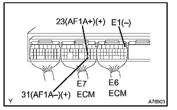 HINT: Voltage between the terminals of the ECM is kept constant regardless of the voltage of the A/F sensor.