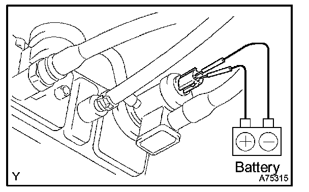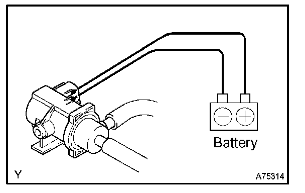 d. Connect the battery's positive (+) and negative (-) leads to the VSV for EVAP terminals.