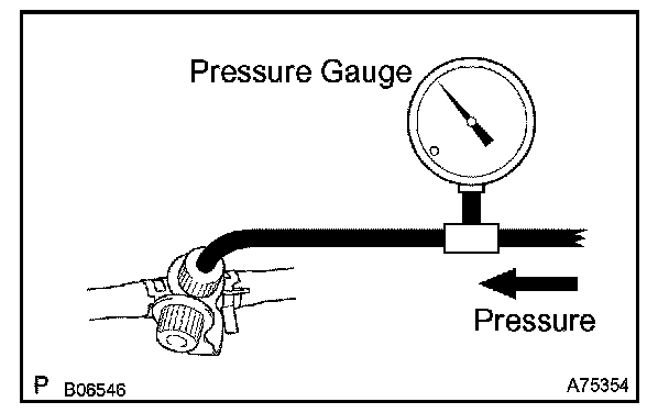 d. Apply pressure of 4 kPa (41 gf/sq.cm, 0.58 psi) to the vent port of the fuel tank.