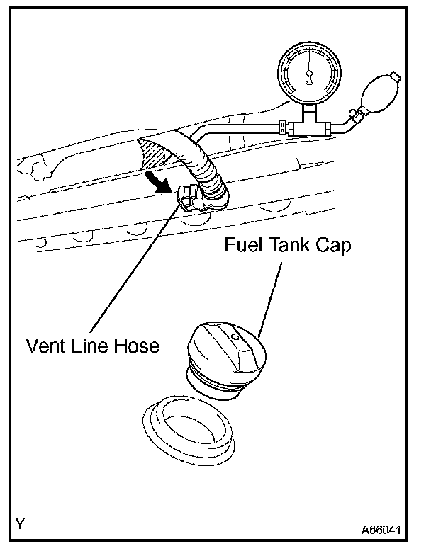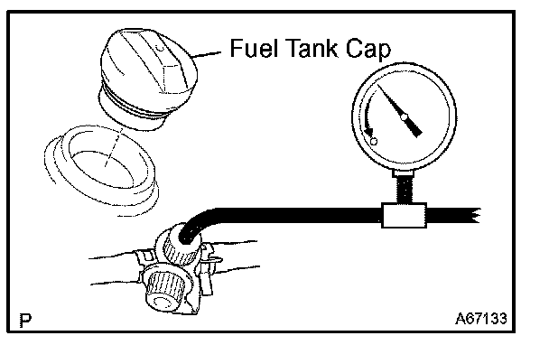 HINT: If the pressure does not decrease when the fuel tank cap is removed, the hose connecting the service port to the fuel tank is blocked.