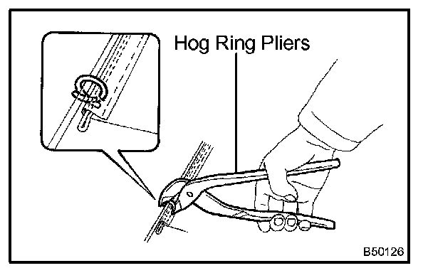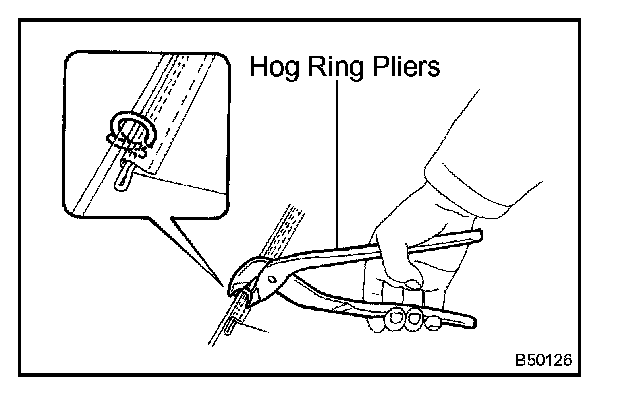 b. Using hog ring pliers, install new hog rings.