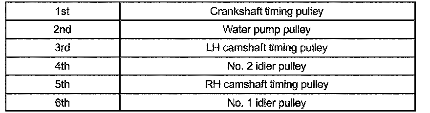 ^ If there is a trace of water and/or oil on the timing belt, repair the leakage and install a new timing belt.