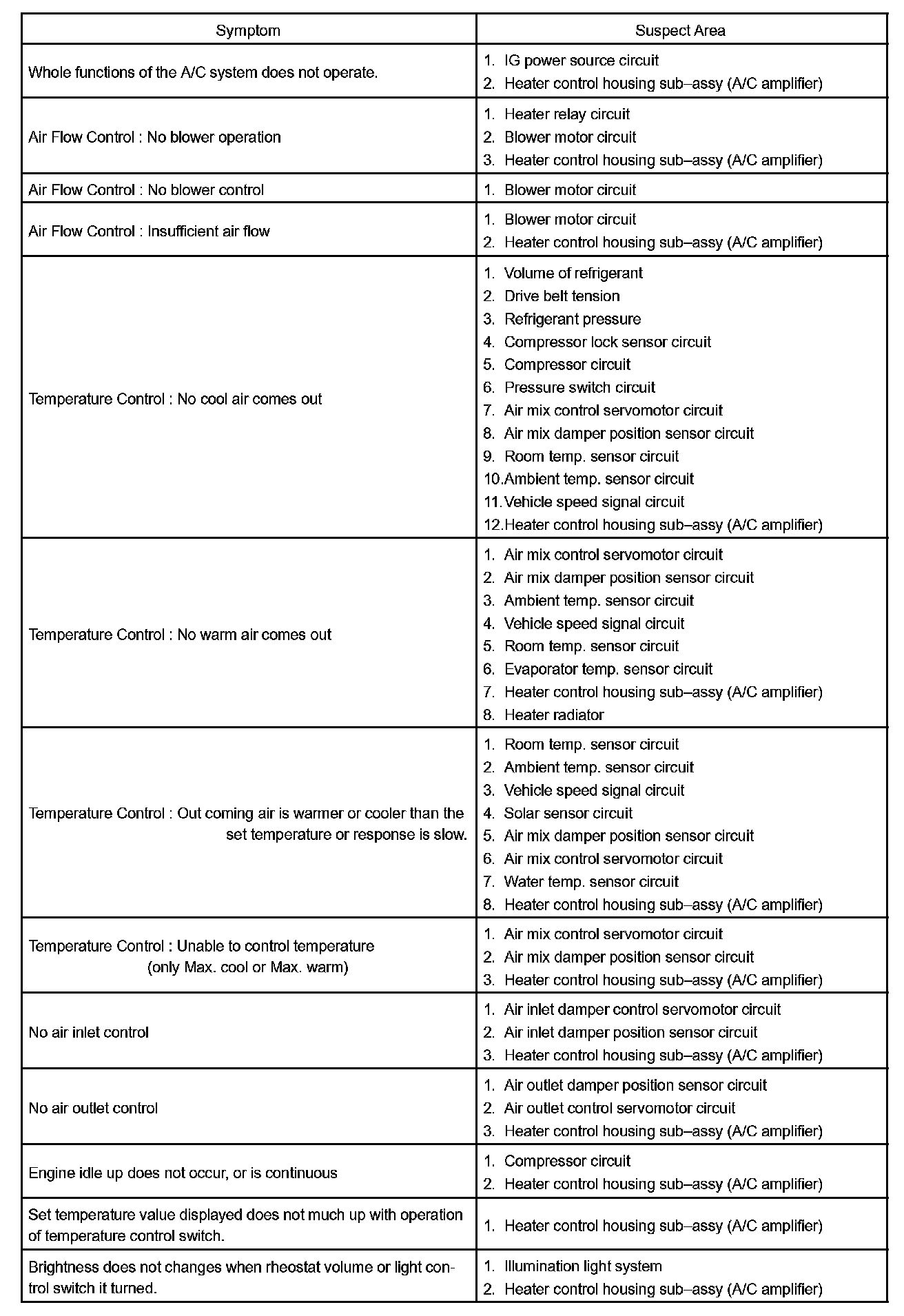 Problem Symptoms Table Part 2: