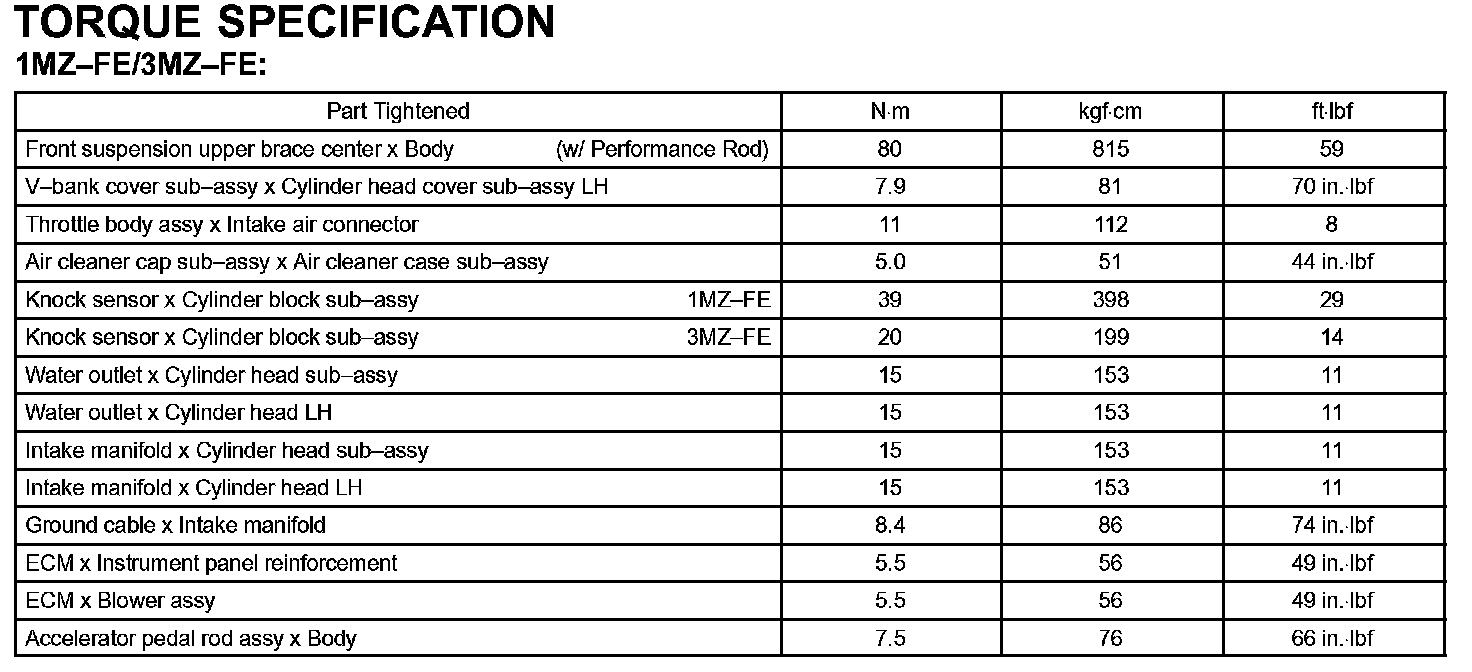 Engine Control System - Torque Specification: