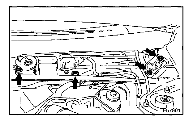 b. Remove the 3 bolts and windshield wiper motor assembly from the windshield wiper link assembly.