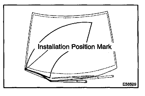 d. Align the FR wiper blade front end with the mark and install the FR wiper arm RH with the nut.