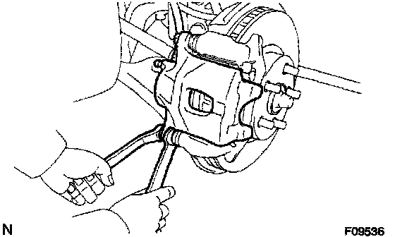 HINT: Do not disconnect the flexible hose from the brake caliper.