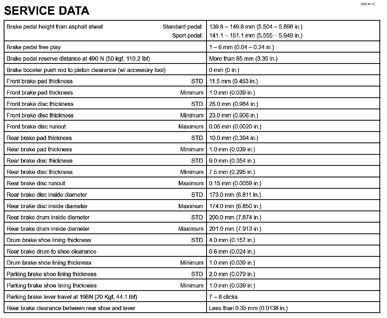 Brake - Service Data: