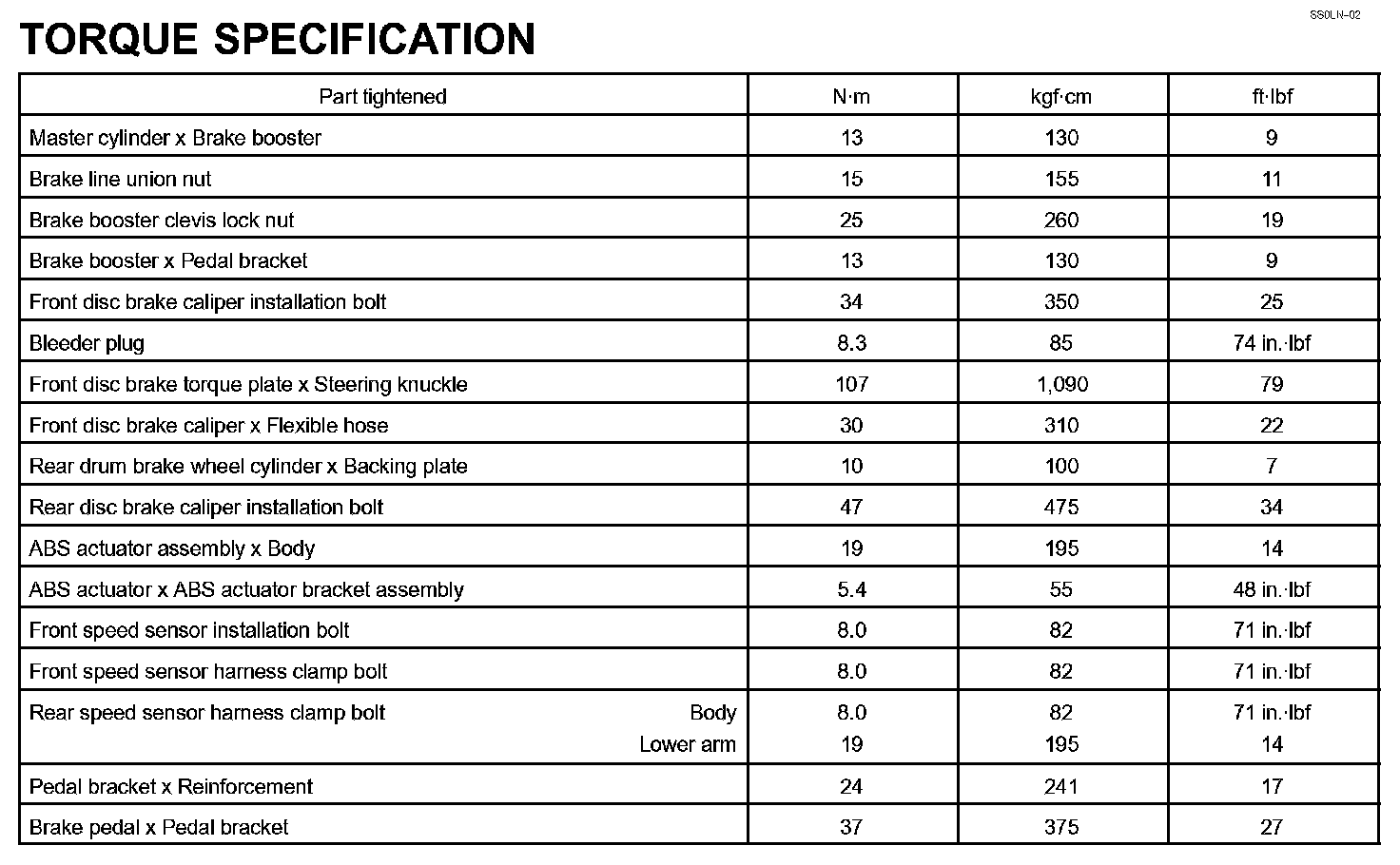 Brake - Torque Specification: