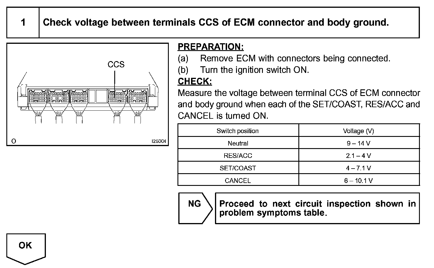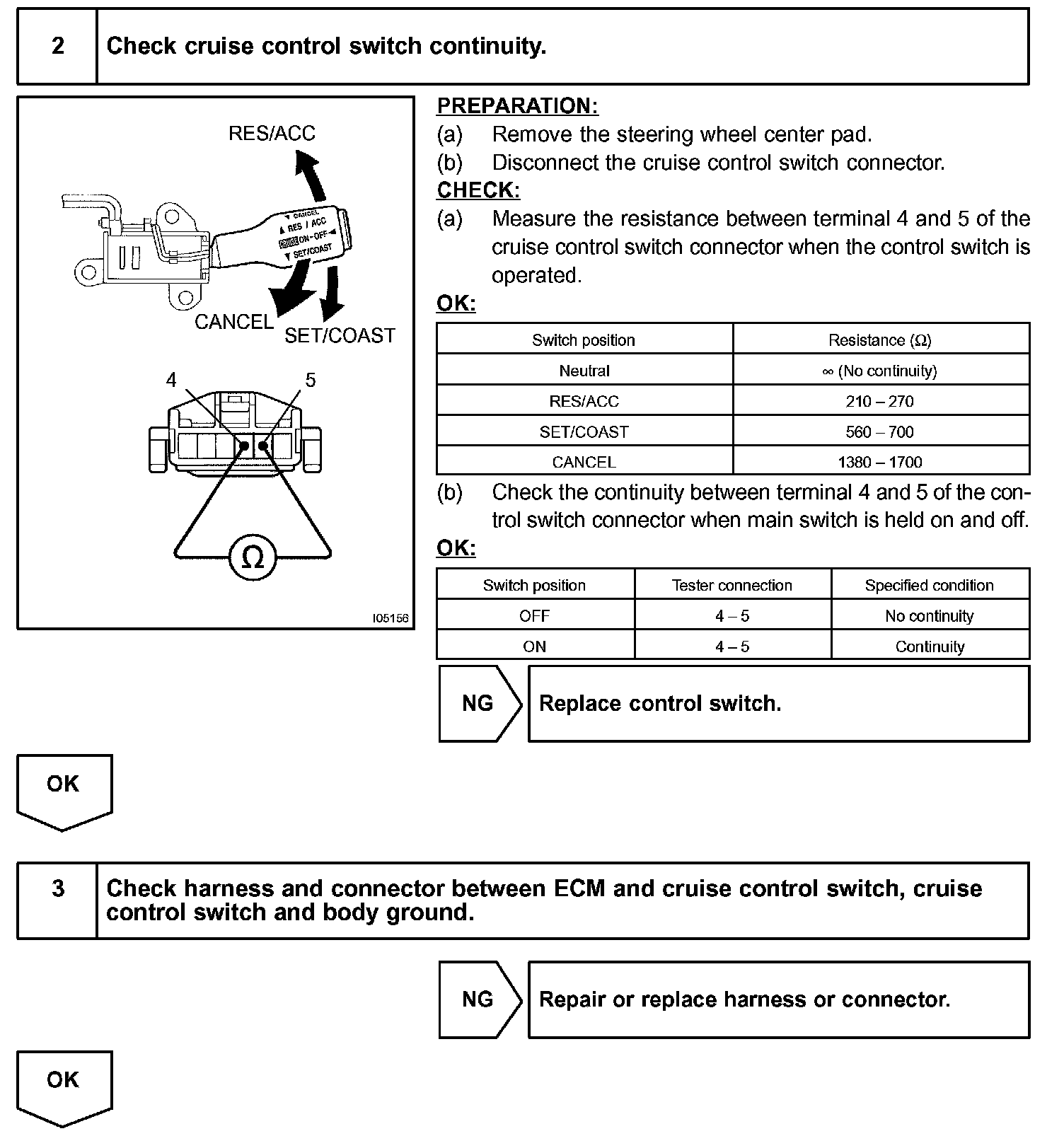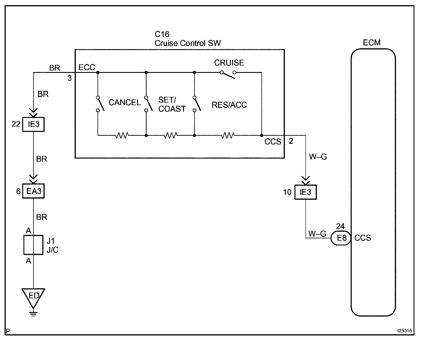 This circuit carries the SET/COAST, RESUME/ACCEL and CANCEL signals (each voltage) to ECM.