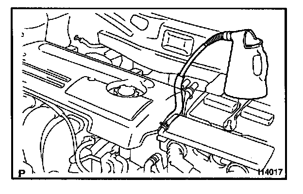 b. Hold the removed heater hose with the end facing up, pour LLC into the hose.