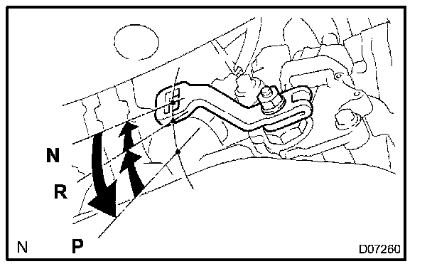 When shifting the shift lever from the N position to other positions, check that the lever can be shifted smoothly and accurately to each position and that the position indicator is aligned with the correct position.