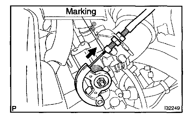 a. Push the wire into the cable so as not to move the throttle link and put a mark on the position shown in the illustration.