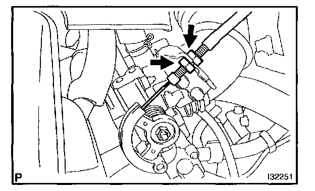 a. Changing the double nut position shown by the arrows, adjust the play to the standard value.
