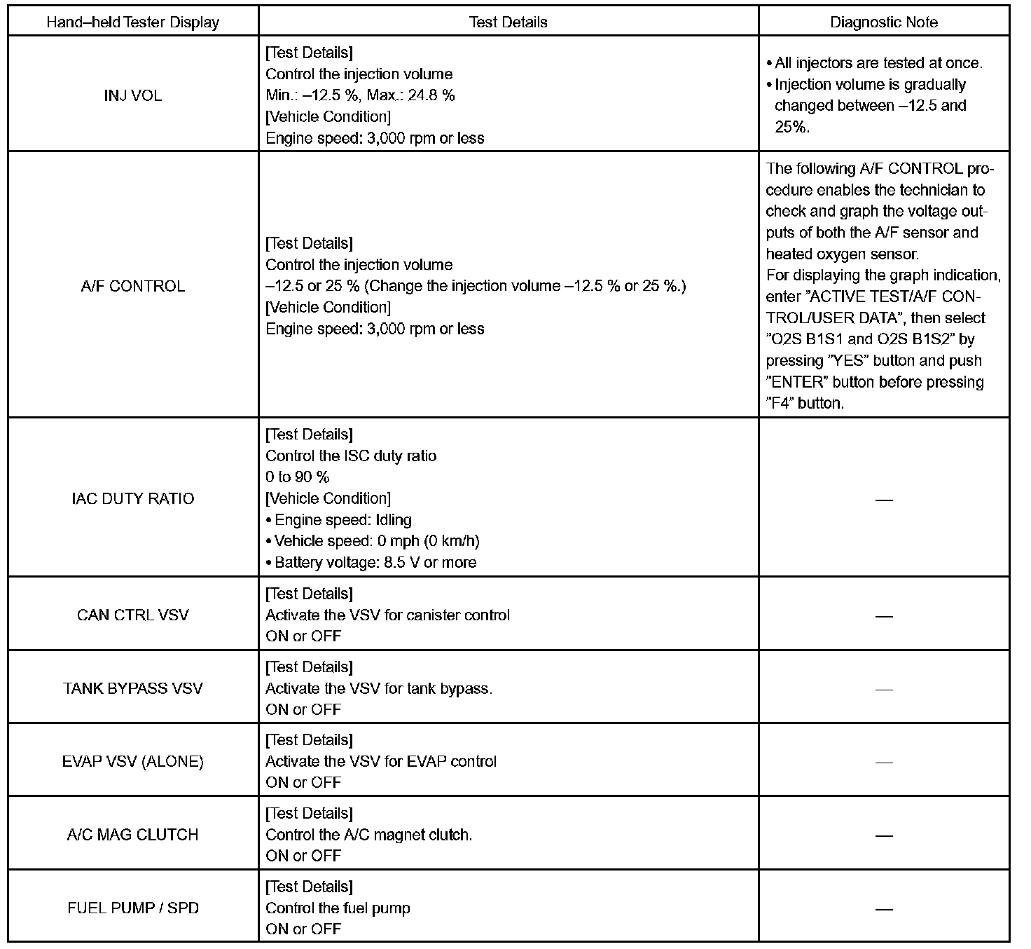 ACTIVE TESTHINT: Performing the ACTIVE TEST using the hand-held tester or the OBD II scan tool allows the relay, VSV, actuator and so on to operate without parts removal. Performing the ACTIVE TEST as a first step of troubleshooting is one method to shorten diagnostic time.