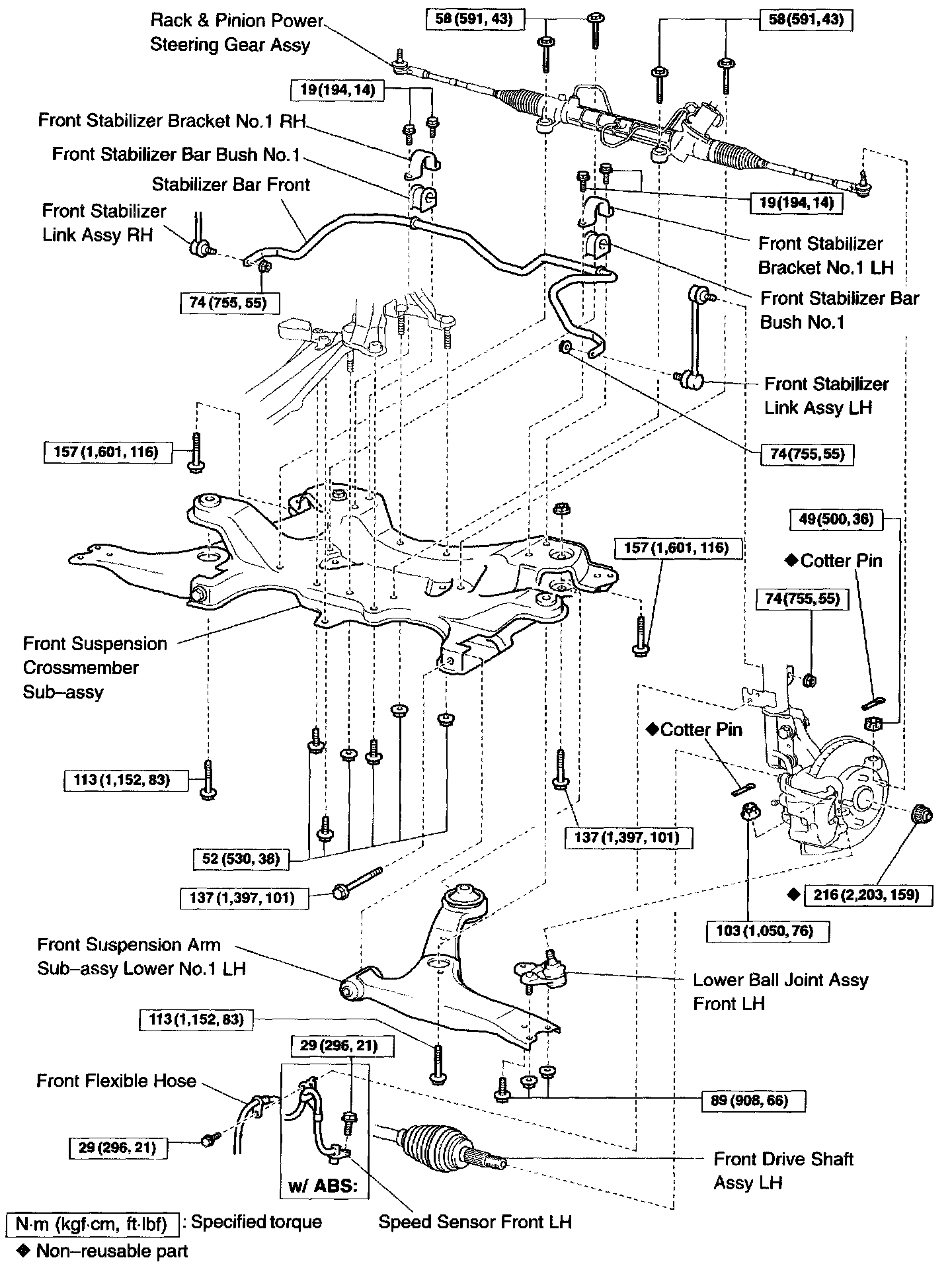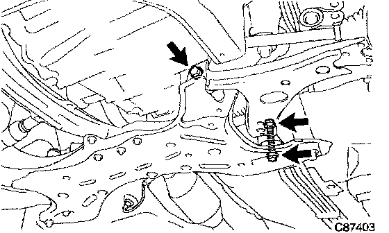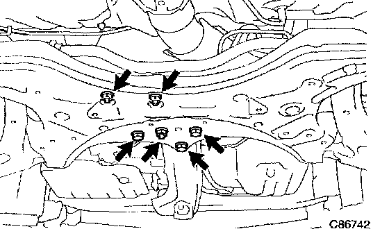 c. Lower the transmission jack, remove the front suspension crossmember sub-assy.