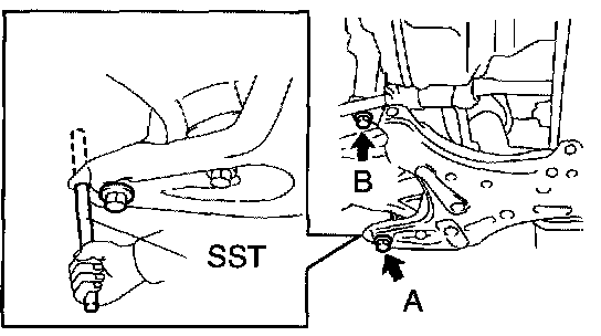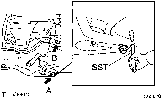 d. Insert SST to the base hole of the LH side of crossmember and LH side of the vehicle.