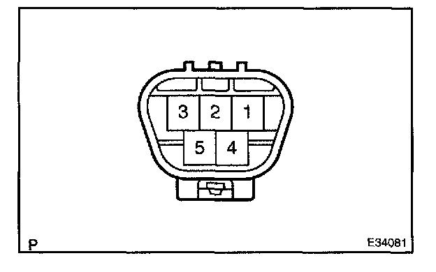 1. Connect the battery (+) to terminal 1 (+1) of the connector, the battery (-) to terminal 5 (E) of the connector. With the motor being rotated at low speed (LO), disconnect terminal 1 (+1) to stop the wiper motor operation at any position except the automatic stop position.