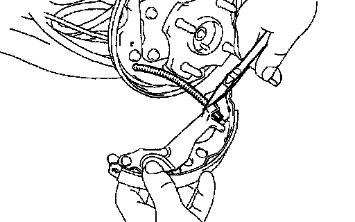 b. Using needle-nose pliers, disconnect the parking brake cable from the parking brake lever, and remove the rear shoe.