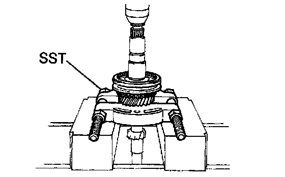 a) Using SST and a press, remove the rear ball bearing and 4th gear.