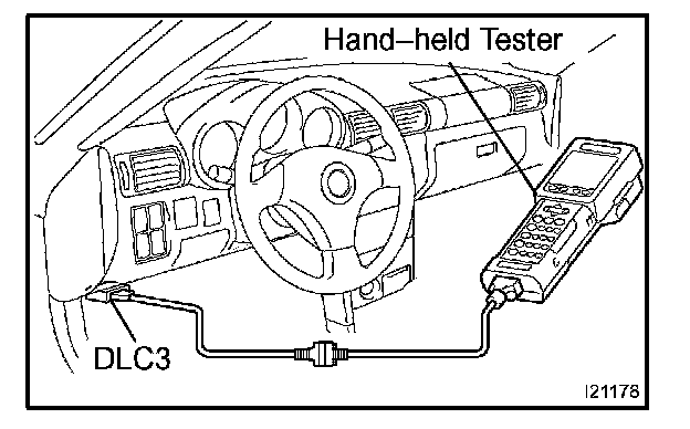DIAGNOSIS SYSTEMThe ECM controls the cruise control function on this vehicle. Data of the cruise control or DTC can be read from the DLC3 of the vehicle. When the cruise control function has a trouble, the CRUISE indicator does not light up but DTC inspection is performed. Therefore, when the cruise control function seems to have a trouble, use the hand-held tester or SST to check and troubleshoot it.