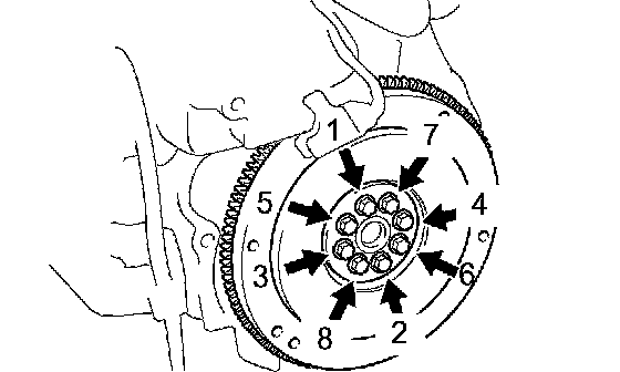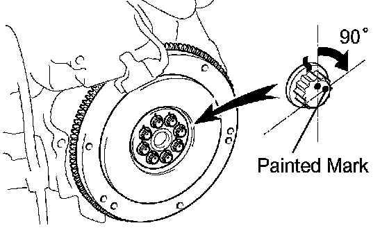 Retighten the flywheel bolts by an additional 90°.
