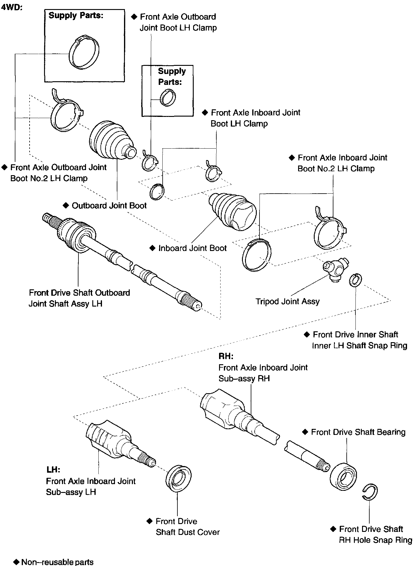 FRONT DRIVE SHAFT COMPONENTS W/ RELATED COMPONENTS