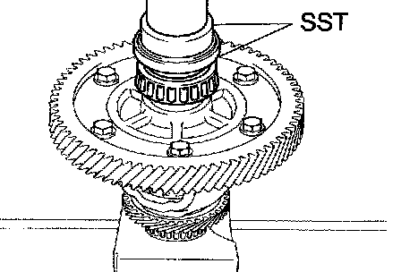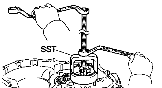 a. Using SST, remove the output shaft front bearing from the transaxle case.
