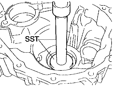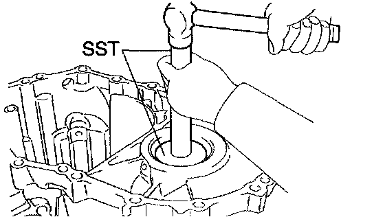 a. Using SST and a hammer, install a new front transaxle case oil seal to the transaxle case.