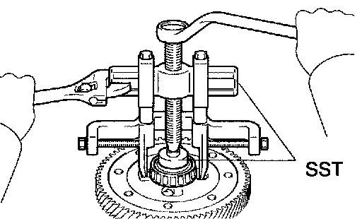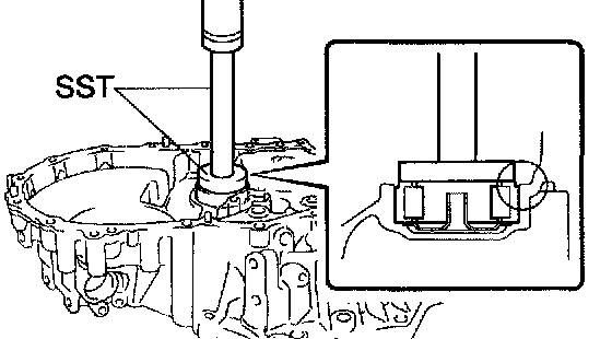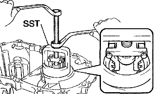 a. Using SST, remove the input shaft front bearing from the transaxle case.