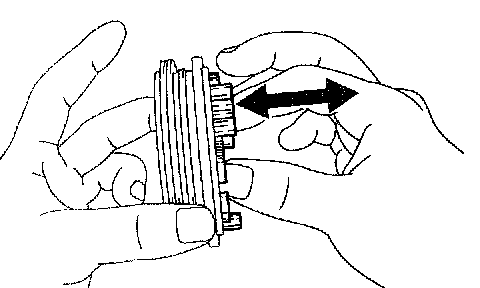 b. Check the braking effect of the synchronizer ring. Turn the synchronizer ring in one direction while pushing it to the gear cone, check that the ring locks.