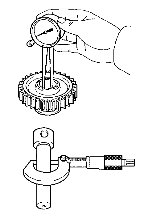 If the outer diameter is below the minimum, replace the reverse idler gear shaft.