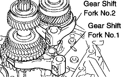 a. Coat the gear shift fork No. 1 and gear shift fork No. 2 with gear oil, install them.