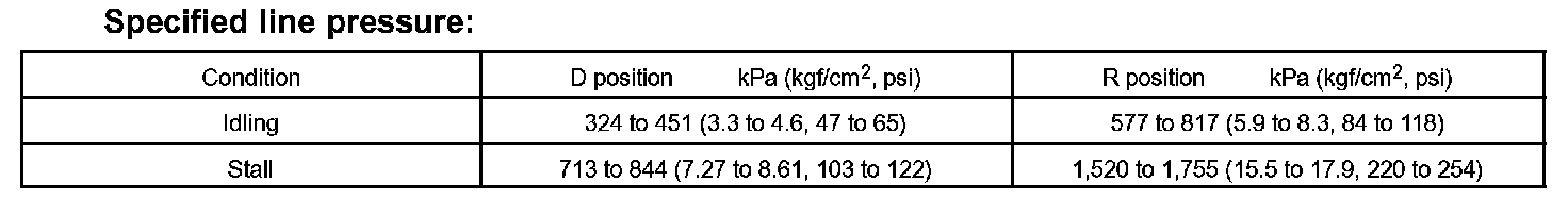 8. Depress the accelerator pedal all the way down. Quickly read the highest line pressure when the engine speed reaches the stall speed.