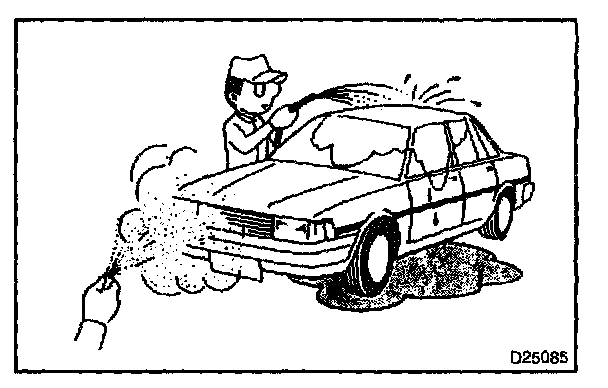 - Never sprinkle water directly onto the engine compartment, but indirectly change the temperature and humidity by applying water spray onto the radiator front surface.